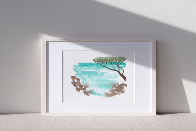 L’aquarelle Calanco est inspirée des calanques du sud de la France, elle rappelle la chaleur et la luminosité de l’été.