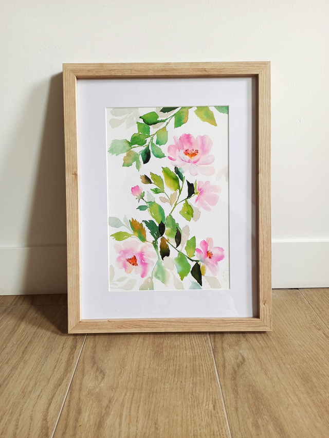 La reproduction fine art de l’aquarelle “Rosiers” fait partie de la collection “Fleurs de Printemps”, une série d’aquarelles modernes inspirées par la beauté et la fraîcheur des fleurs qui émergent au début de la saison.