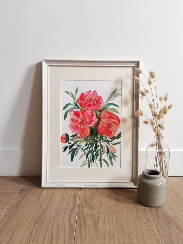 Offrez-vous une œuvre d’art avec cette reproduction fine art de l’aquarelle Bouquet de Pivoines.