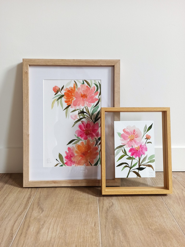 La reproduction fine art de l’aquarelle Camélias fait partie de la collection “Fleurs de Printemps”, une série d’aquarelles modernes inspirées par la beauté et la fraîcheur des fleurs qui émergent au début de la saison.